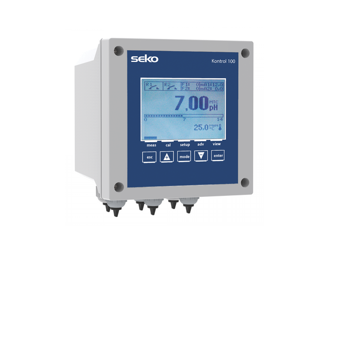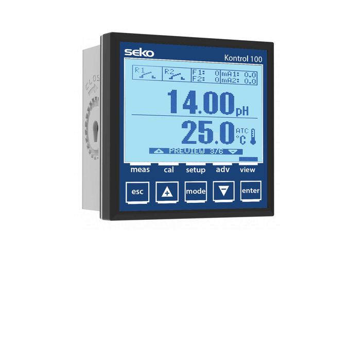 Kontrol 100 單參數(shù)控制儀表是一款采用最新技術(shù)理念設計、 制造而成的單參數(shù)控制儀表, 定位于高端用戶。 可實現(xiàn)獨立比例控制輸出、 探頭質(zhì)量監(jiān)測和其他多種繼電器輸出及設置。 操作簡單、 方便, 顯示直觀、 易懂。適用于需要高精度測量的領(lǐng)域,可測量參數(shù)覆蓋范圍更廣。Kontrol 100水質(zhì)測量儀專為高端水處理應用中的pH值、ORP電位、電導率、流速、濁度和氧氣測量而設計,具有多項功能,旨在簡化操作最復雜的流程,從反滲透到冷卻水處理。 該裝置具有Modbus RTU/ASCII協(xié)議,可通過RS485端口進行遠程控制,便于在較大的多站點復雜系統(tǒng)中使用。此單參數(shù)控制器還能顯示二維碼,可供掃描以快速便捷地訪問手冊,同時“電極質(zhì)量”控制功能可協(xié)助操作員管理和更換測量電極。另外,多彩背光屏幕即使在弱光環(huán)境下也易于閱讀,包括反轉(zhuǎn)顯示功能,可將屏幕上的文本反轉(zhuǎn)以提供高對比度。