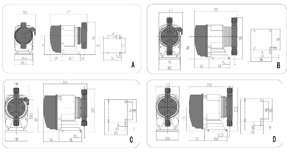 泵頭材質(zhì): 泵頭材質(zhì)可選:PP PVC PVDF PTFE SS316